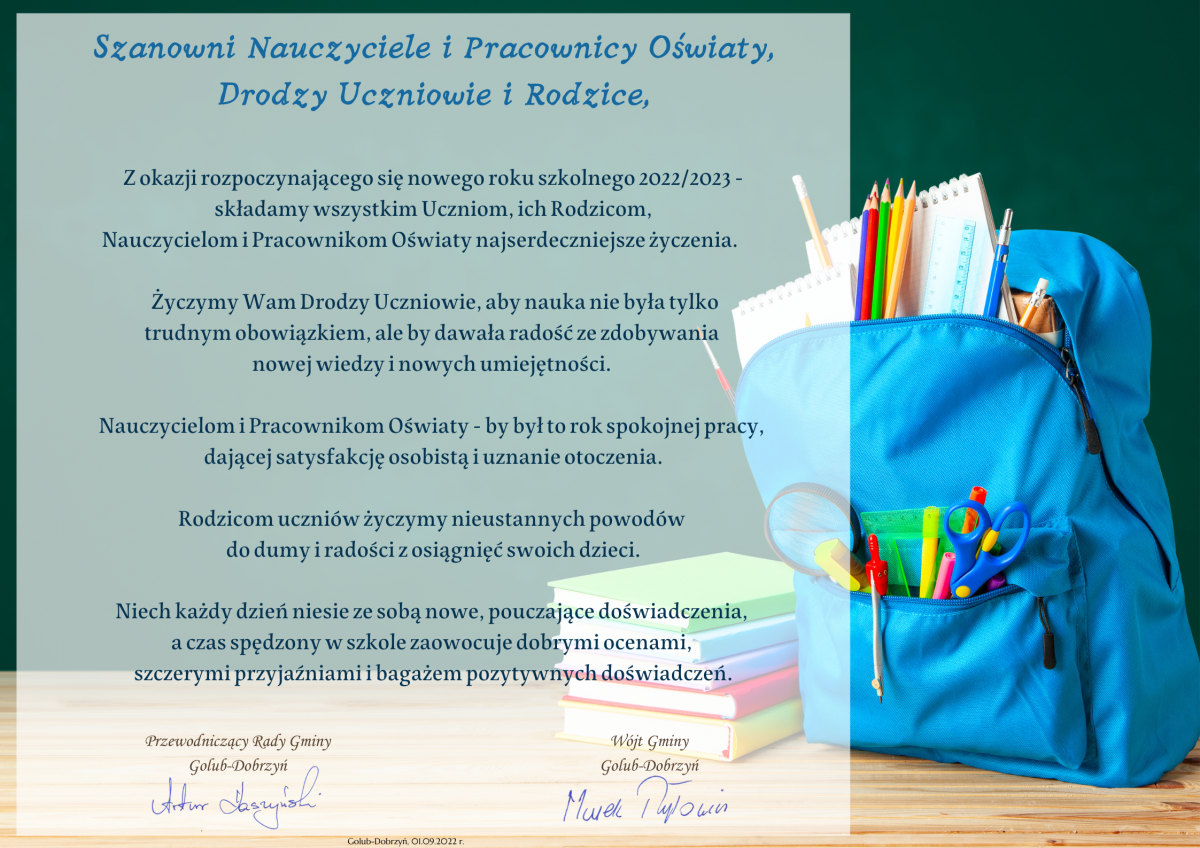 Z okazji rozpoczynającego się nowego roku szkolnego 2022/2023 -