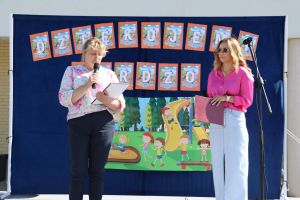 Po części artystycznej głos zabrali zaproszeni goście. „Inwestycja została zrealizowana w ramach dwóch projektów, za łącznie ponad 235 tys. zł. Niech dobrze służy dzieciom, młodzieży i dorosłym” - mówił Wójt Marek Ryłowicz. Pani Dorota Krzyżanowska przewodnicząca Rady Rodziców, powiedziała, że „Dzisiejszy dzień to radosne święto, mamy nowy, piękny plac zabaw przy naszej szkole. Czekaliśmy na tę chwilę od wielu lat. Dzień ten na trwale zapisze się w historii tej szkoły. Spełniło się marzenie wielu dzieci, rodziców i nauczycieli”.