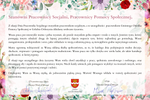 Z okazji Dnia Pracownika Socjalnego wszystkim pracownikom socjalnym, a w szczególności pracownikom Gminnego Ośrodka Pomocy Społecznej w Golubiu-Dobrzyniu składamy serdeczne życzenia.