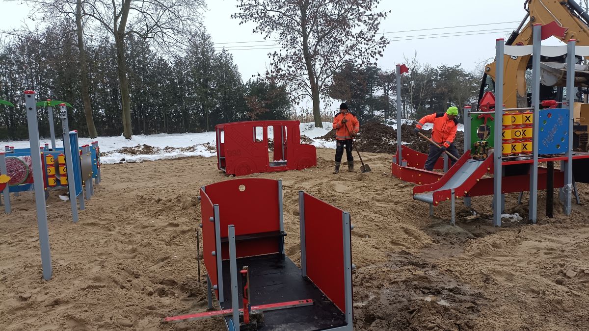 Roboty są obecnie na kolejnym etapie realizacji, a na placu pojawiają się już nowe elementy wyposażenia. Trwają prace montażowe oraz działania związane z zagospodarowaniem terenu.